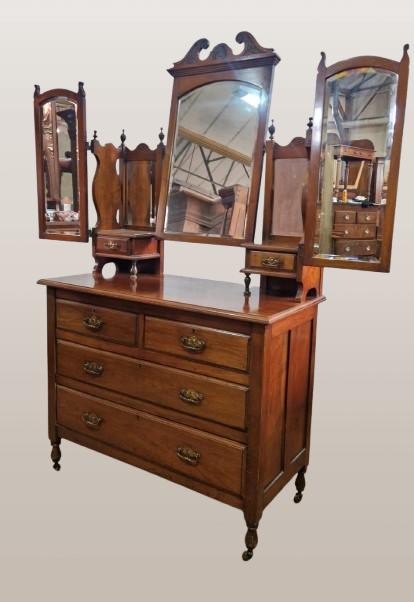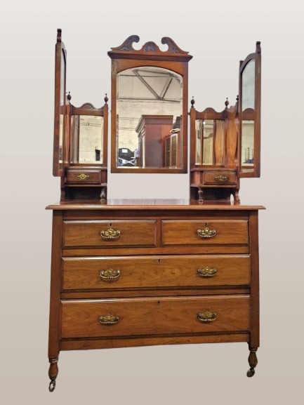 Antikvarinė Viktorijos laikų riešutmedžio komoda su veidrodžiu