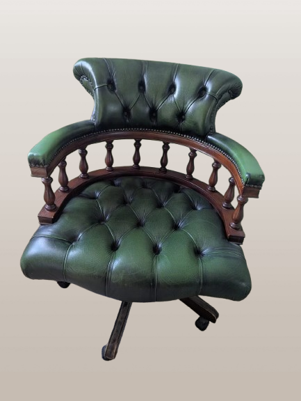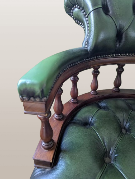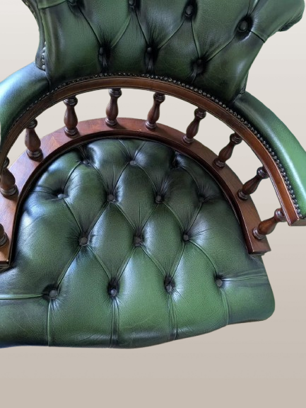 Chesterfield Captains kėdė Antikvarinė žalia odinė pasukama